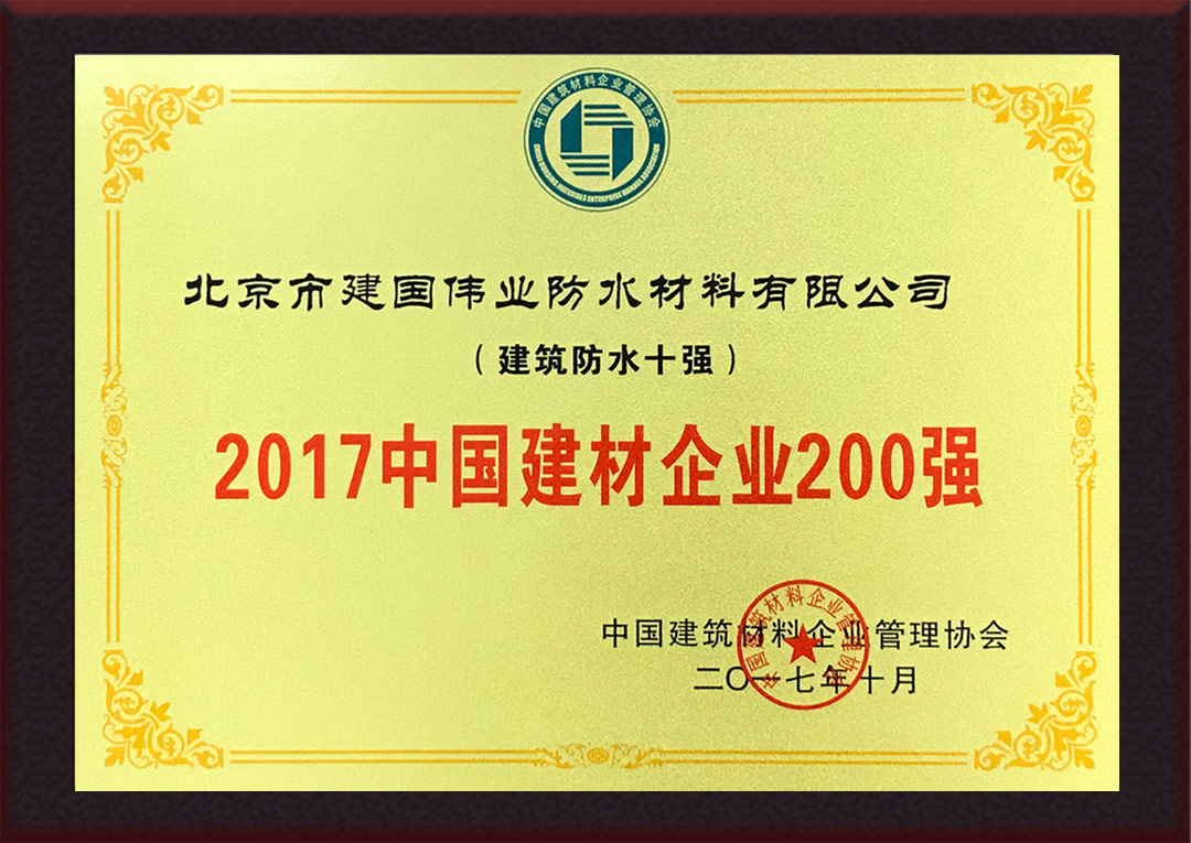 2017中國(guó)建材企業(yè)200強(qiáng)(建筑防水10強(qiáng)) |