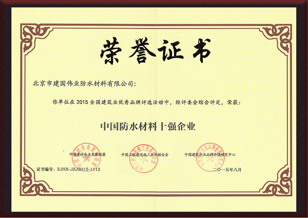 中國(guó)防水材料十強(qiáng)企業(yè) |