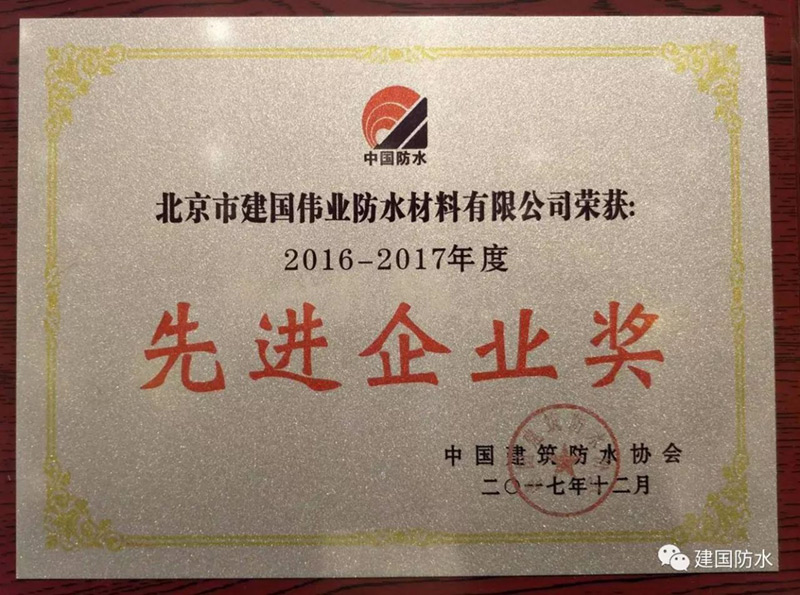 建國(guó)偉業(yè)集團(tuán)董事長(zhǎng)李勇先生帶隊(duì)參加本次會(huì)議。會(huì)議中建國(guó)偉業(yè)集團(tuán)憑借自身實(shí)力,榮獲“2016-2017年建筑防水行業(yè)先進(jìn)企業(yè)”稱號(hào)。
